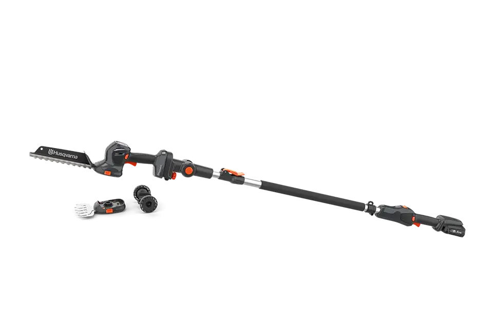 En kompletterande stång med ett teleskopiskt skaft är inkluderat för att öka räckvidden till upp till 3 meter och skapa en ergonomisk arbetsställning. I syfte att minimera det nödvändiga förvaringsutrymmet är busk-/grässaxen kompatibel med Aspire™-förvaringslösningen och levereras med en specialanpassad krok för praktisk upphängning på en vägg.